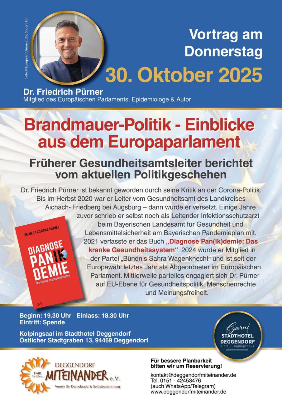 Dr. Friedrich Pürner ist bekannt geworden durch seine Kritik an der Corona-Politik. Bis im Herbst 2020 war er Leiter vom Gesundheitsamt des Landkreises Aichach-Friedberg bei Augsburg – dann wurde er versetzt. Einige Jahre zuvor schrieb er selbst noch als Leitender Infektionsschutzarzt beim Bayrischen Landesamt für Gesundheit und Lebensmittelsicherheit am Bayerischen Pandemieplan mit. 2021 verfasste er das Buch „Diagnose Pan(ik)demie: Das kranke Gesundheitssystem“. …